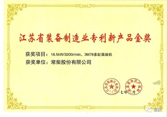 便捷链接:常柴3M78轻型发动机荣获专