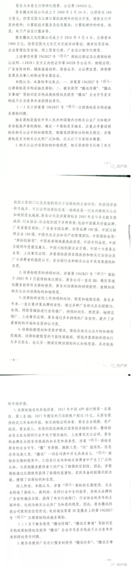 山东腾讯文化传媒有限公司,因侵犯“腾讯”商标专用权、构成不正当竞争,被济南市中级人民法院判决立即停止侵权行为,并赔偿30万元,同时认定“腾讯”为,据悉“腾讯”首次被认定为驰名商标